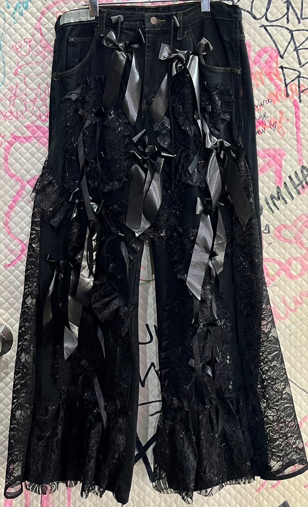 Reconstructed Lace-up Tape Pants
