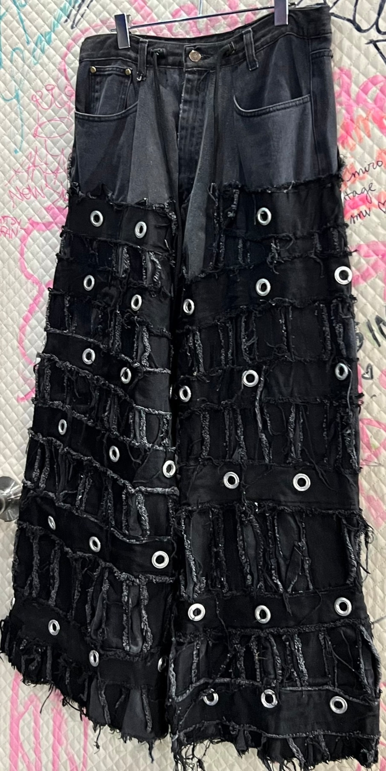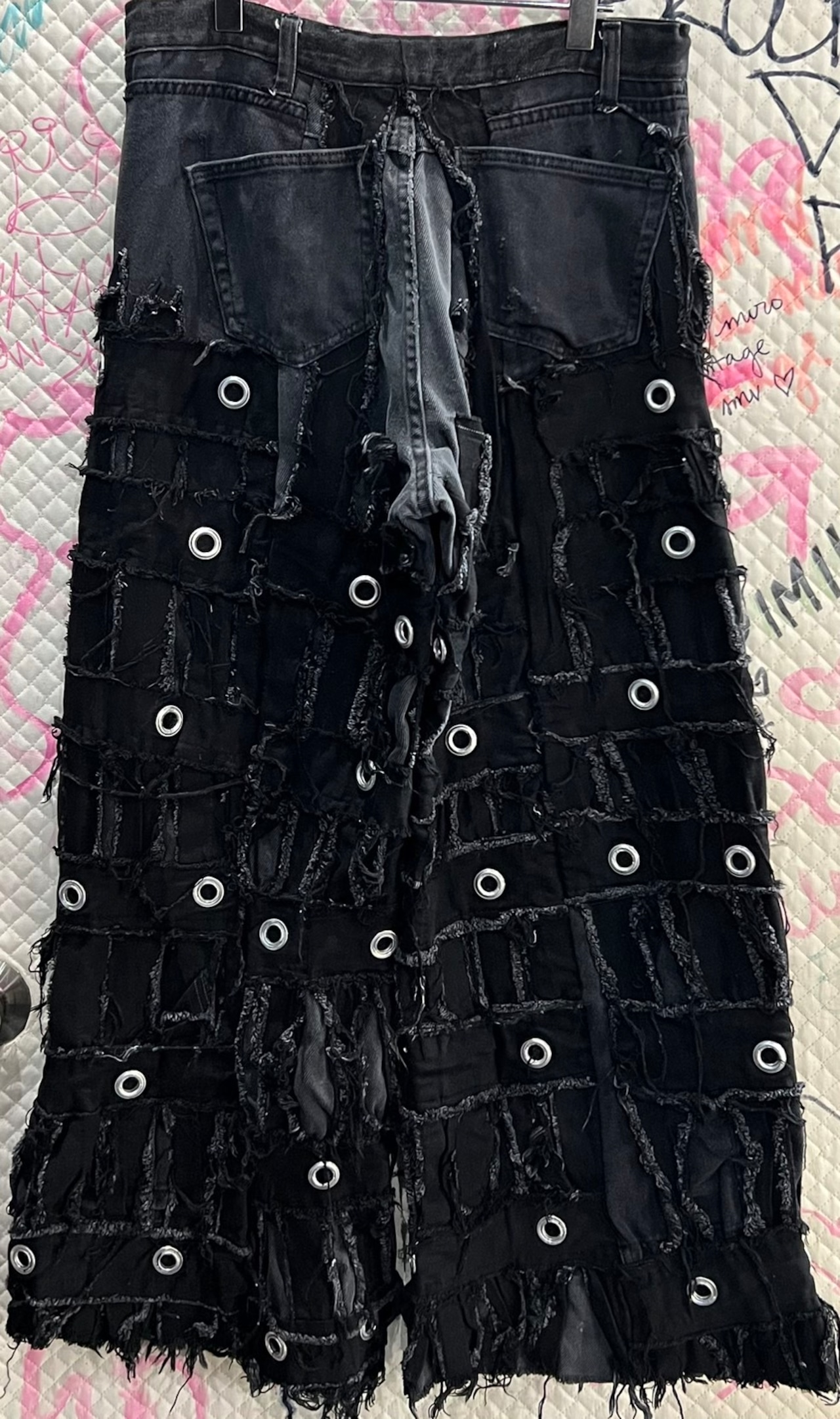Reconstructed Eyelet Baggy Denim Pants