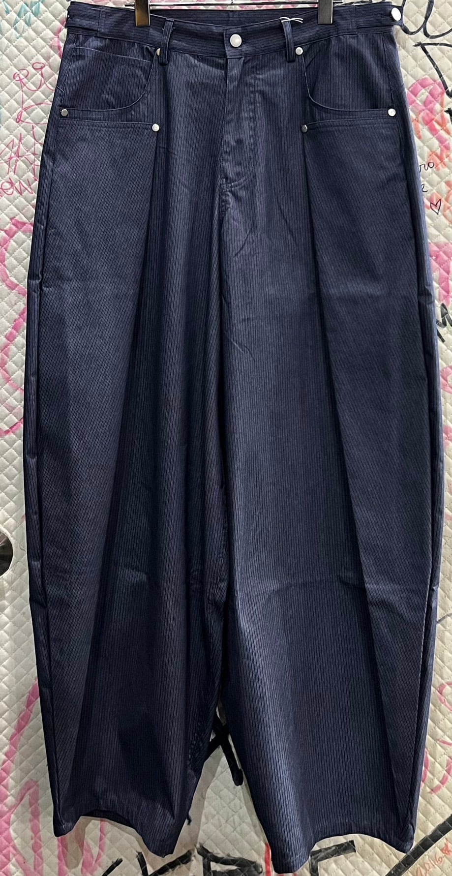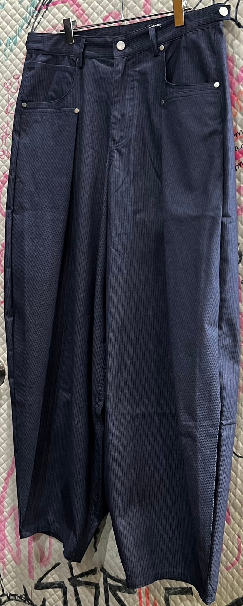 変形ストライパンツ