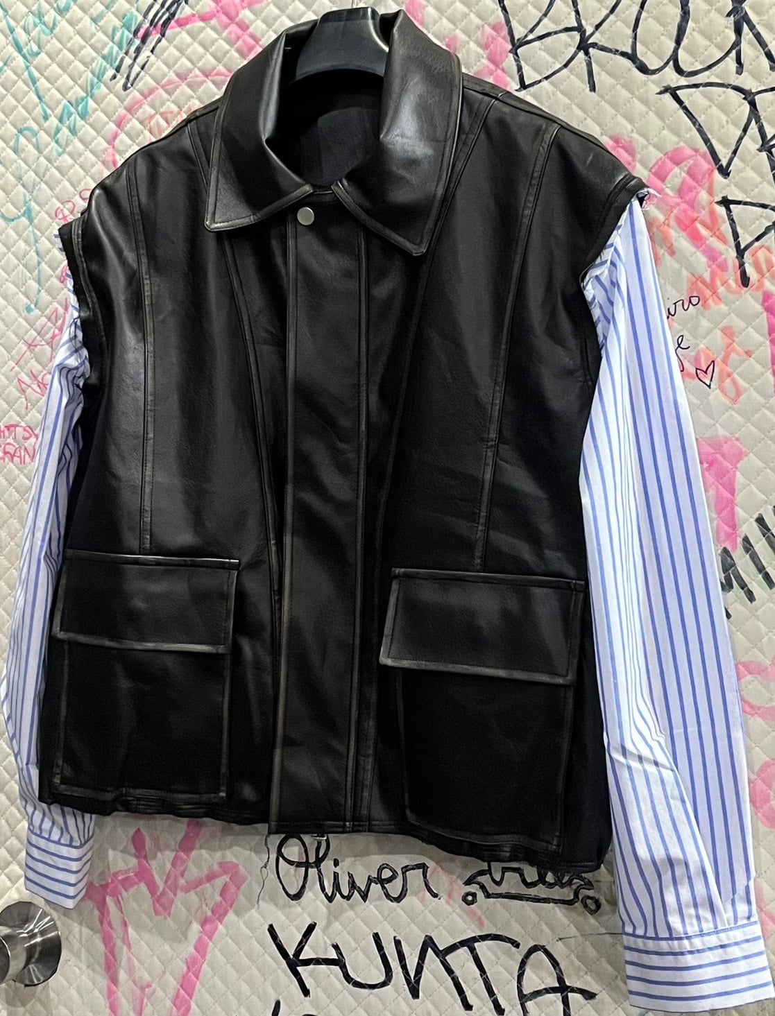 解体レザーシャツスリーブジャケット